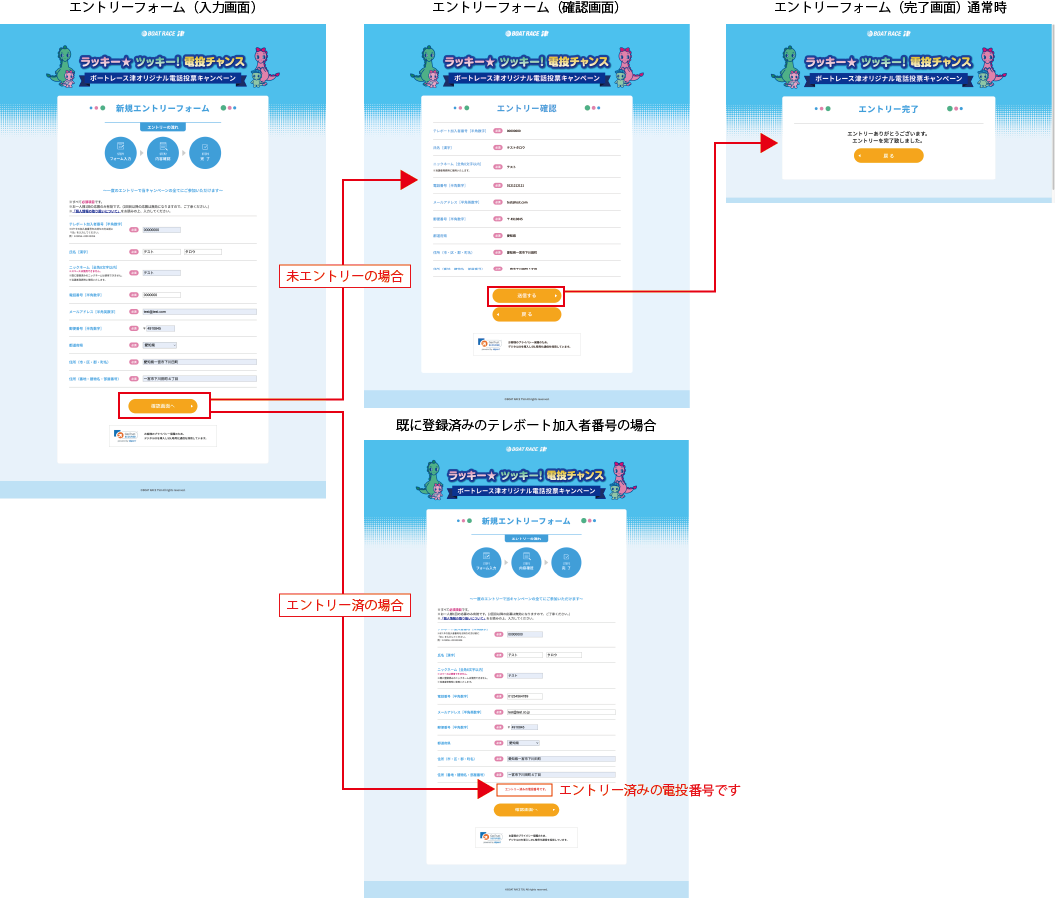 当該期間中にエントリー操作を実施されましたお客様におかれましては、誠に恐れ入りますが、下記の操作手順のとおり、改めてエントリーフォームよりエントリーをしていただきますようお願い致します。